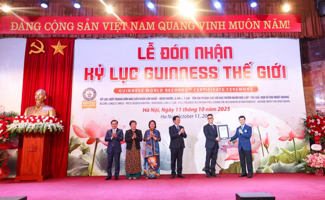 Lễ đón nhận Kỷ lục Guinness thế giới có sự tham dự của Phó Thủ tướng Chính phủ Mai Văn Chính, Phó trưởng Ban Tuyên giáo và Dân vận Trung ương Đinh Thị Mai cùng đại diện các ban, ngành, đông đảo các họa sĩ và những người làm nghệ thuật.