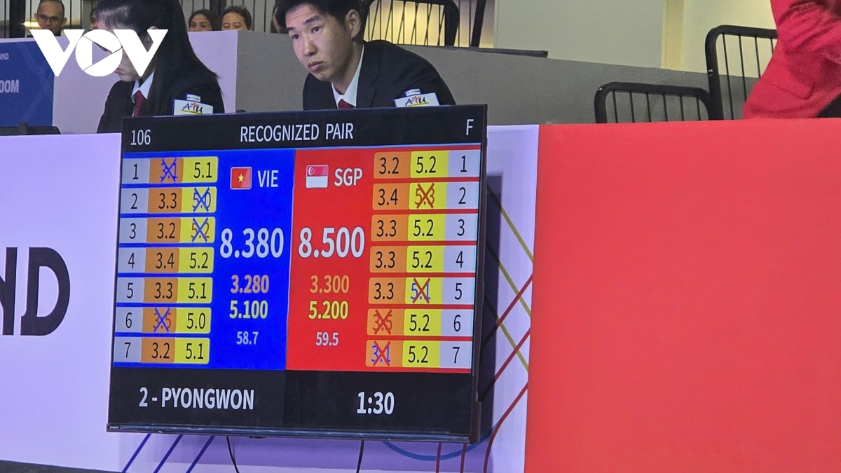 Tuy nhiên, khi kết thúc phần thi, trọng tài lại chấm điểm đội Singapore cao hơn dù đội bạn mắc một số lỗi.