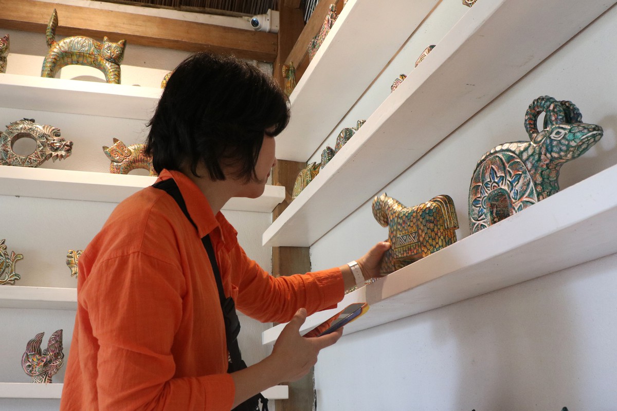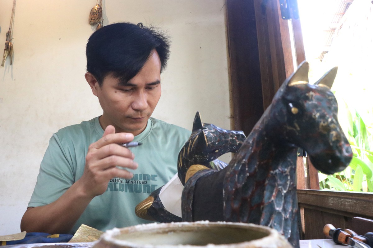 Trong không gian nồng đượm mùi củi lũ và sơn mài, chị Ngô Minh Thư (SN 2001, phường Hội An Tây) đang tỉ mỉ kiểm tra lại những đường vân trên một tác phẩm chạm khắc hình con ngựa sắp hoàn thiện. Thư không phải là nghệ nhân đục đẽo trực tiếp, nhưng cô là người "giữ lửa" cho những câu chuyện của làng. Gần hai năm gắn bó, Thư xem từng khúc củi lũ như một người bạn cũ cần được chăm sóc.