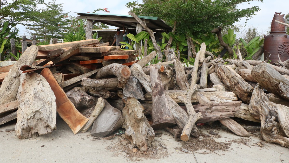 Những khúc củi lũ xù xì được thu gom về tái chế tại Làng Củi Lũ.