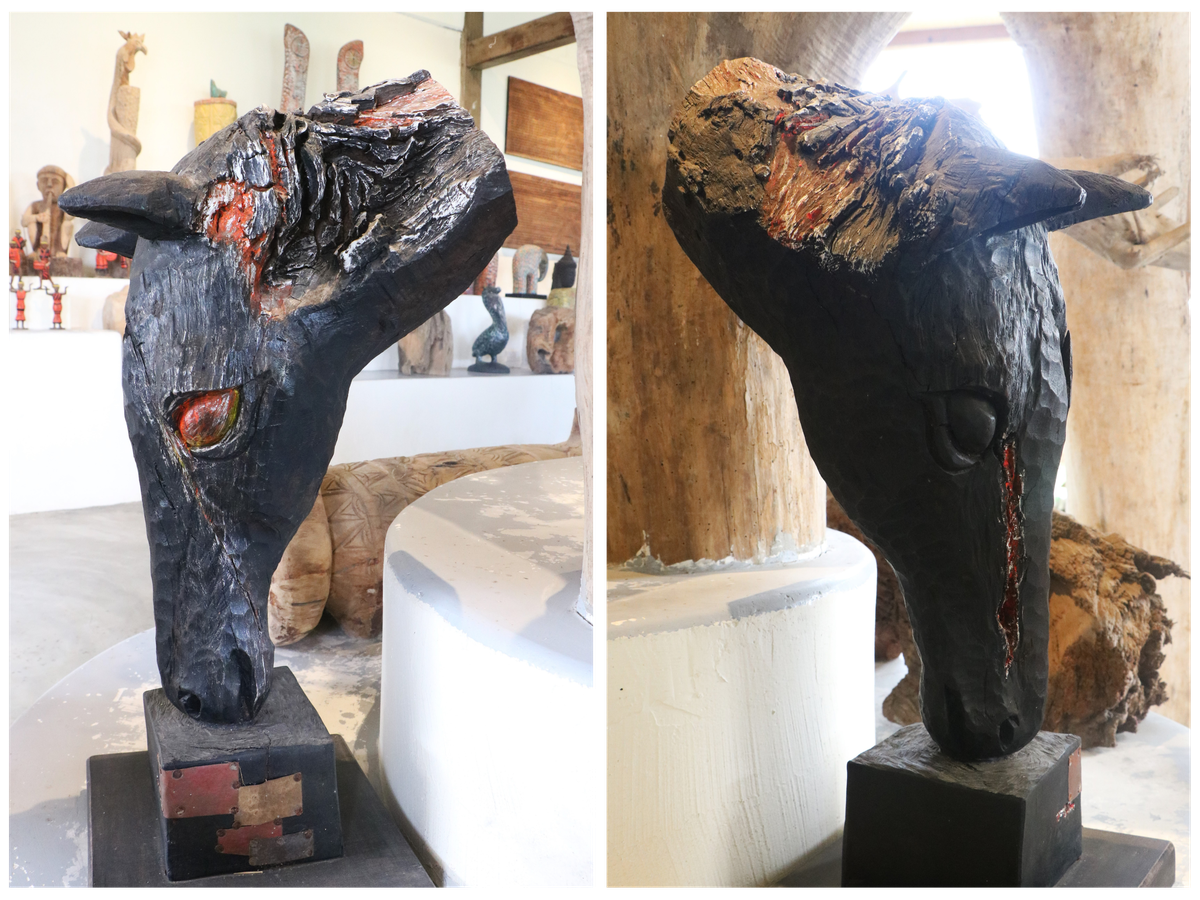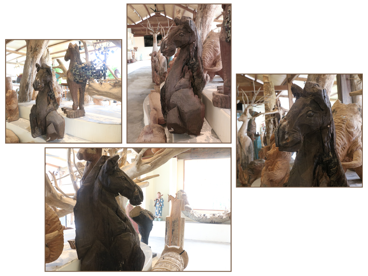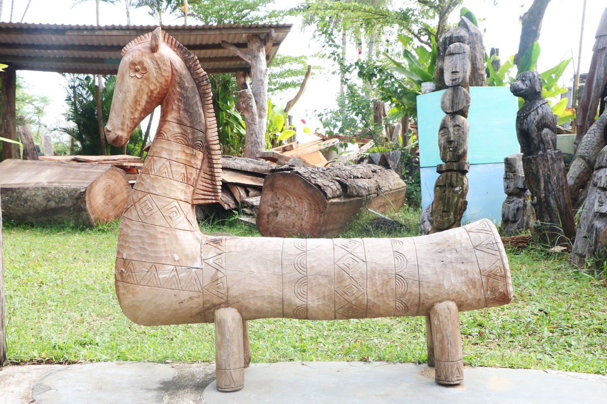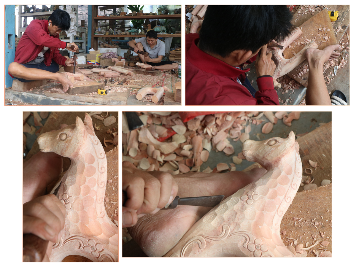 Những khúc gỗ mục sau khi được làm sạch, xử lý mối mọt, sẽ được các nghệ nhân dựa vào hình dáng tự nhiên để đục đẽo. Một gốc cây cong vút có thể trở thành chiếc đuôi ngựa đang bay trong gió; một mẩu gỗ sần sùi lại hóa thành cơ bắp cuồn cuộn của loài vật này…