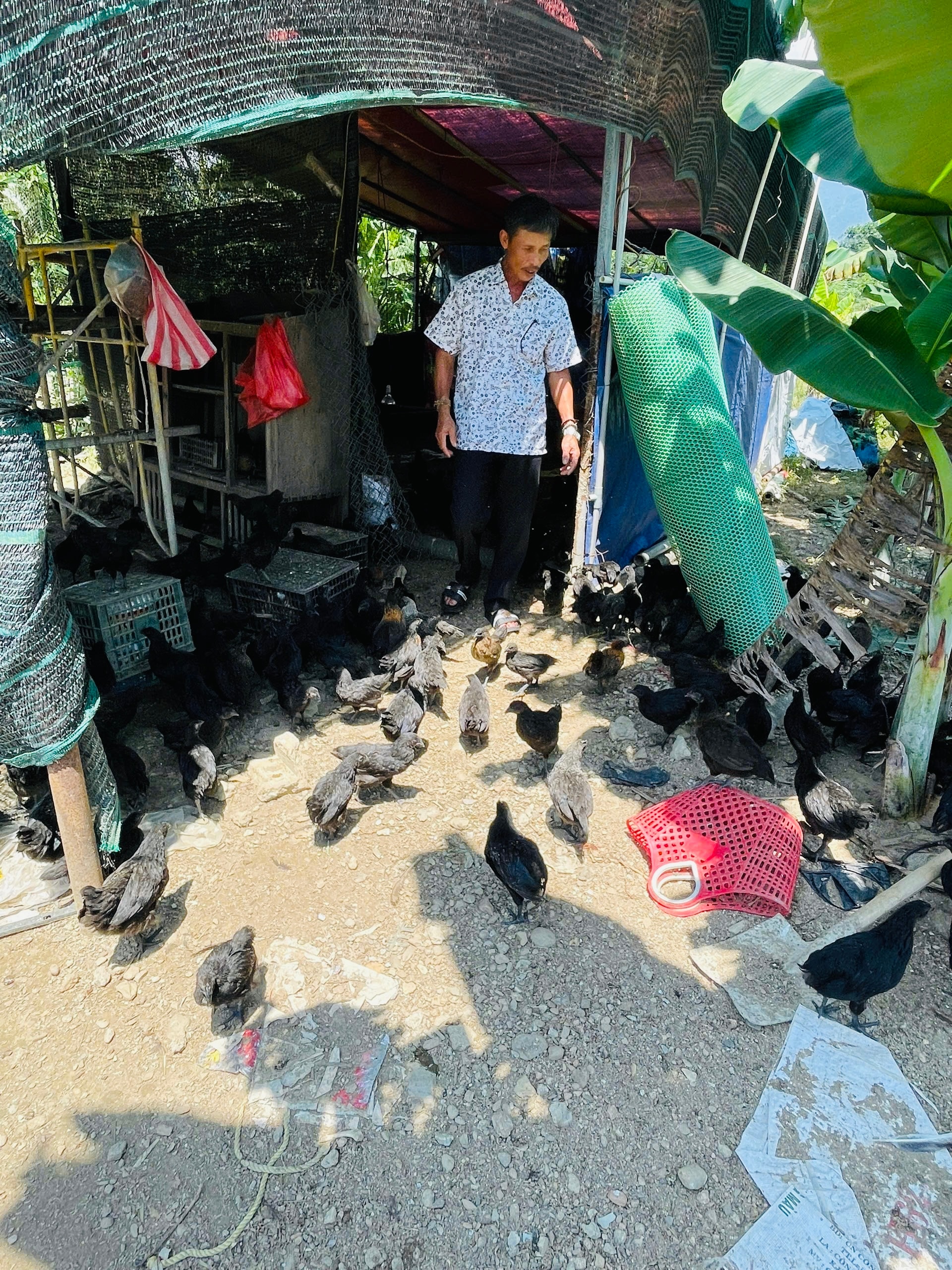 Trại gà của ông Cao Văn Đà (xã Tam Xuân) tái đàn sau Tết, chuẩn bị nguồn cung gia cầm cho thị trường. Ảnh: K.H