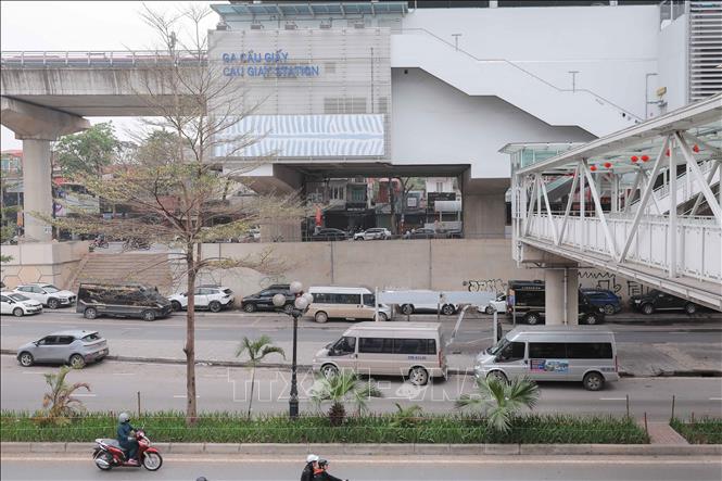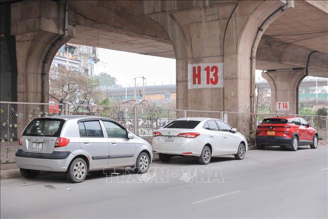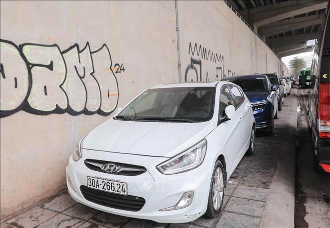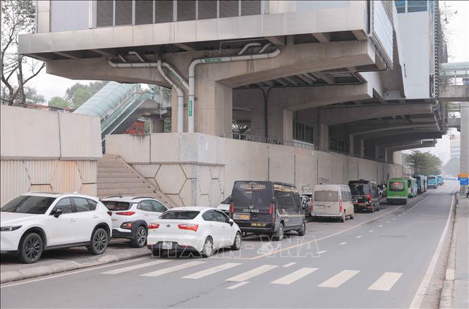 Ô tô đỗ kín vỉa hè dưới gầm nhà ga Cầu Giấy.