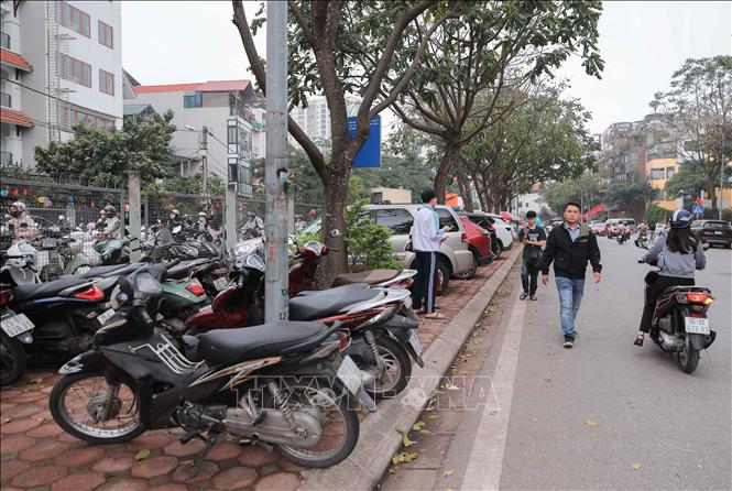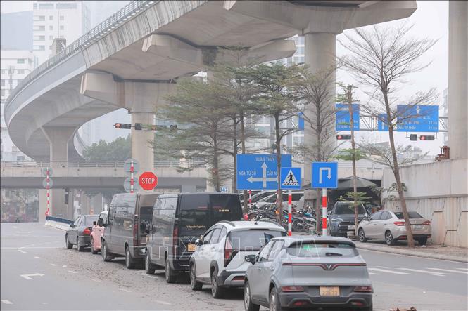 Nhiều ôtô, xe máy đỗ kín lề đường, thậm chí tràn xuống lòng đường dưới gầm nhà ga Cầu Giấy.