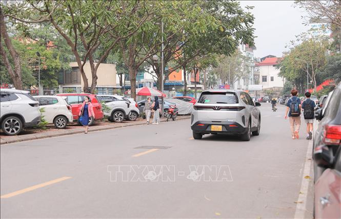 Bãi xe trước Đền Voi Phục, nhiều ô tô, xe máy đỗ kín cả chân cầu, gây mất mỹ quan và tiềm ẩn nguy cơ cháy nổ.