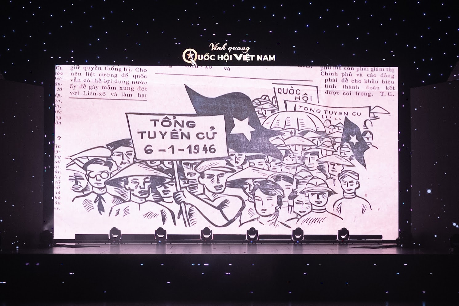 Chương trình tái hiện sinh động và đầy cảm xúc hành trình lịch sử vẻ vang của Quốc hội Việt Nam. Ảnh: Phạm Thắng