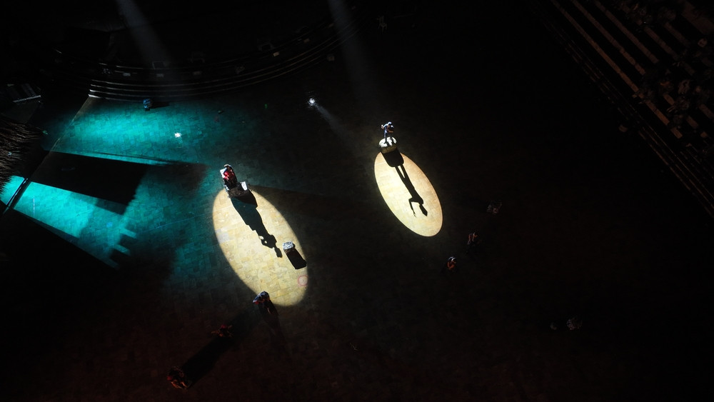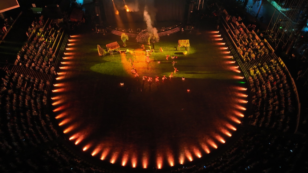 Với sự kết hợp của 3D mapping, laser, khói và âm thanh, sân khấu trở thành một nghi lễ sống động. Khi rồng hiện lên giữa làn khói, khi ngọn lửa nghi lễ bùng sáng, tiếng tù và vọng ra từ núi rừng - Thiêng khiến khán giả như đang dự một nghi lễ thật.