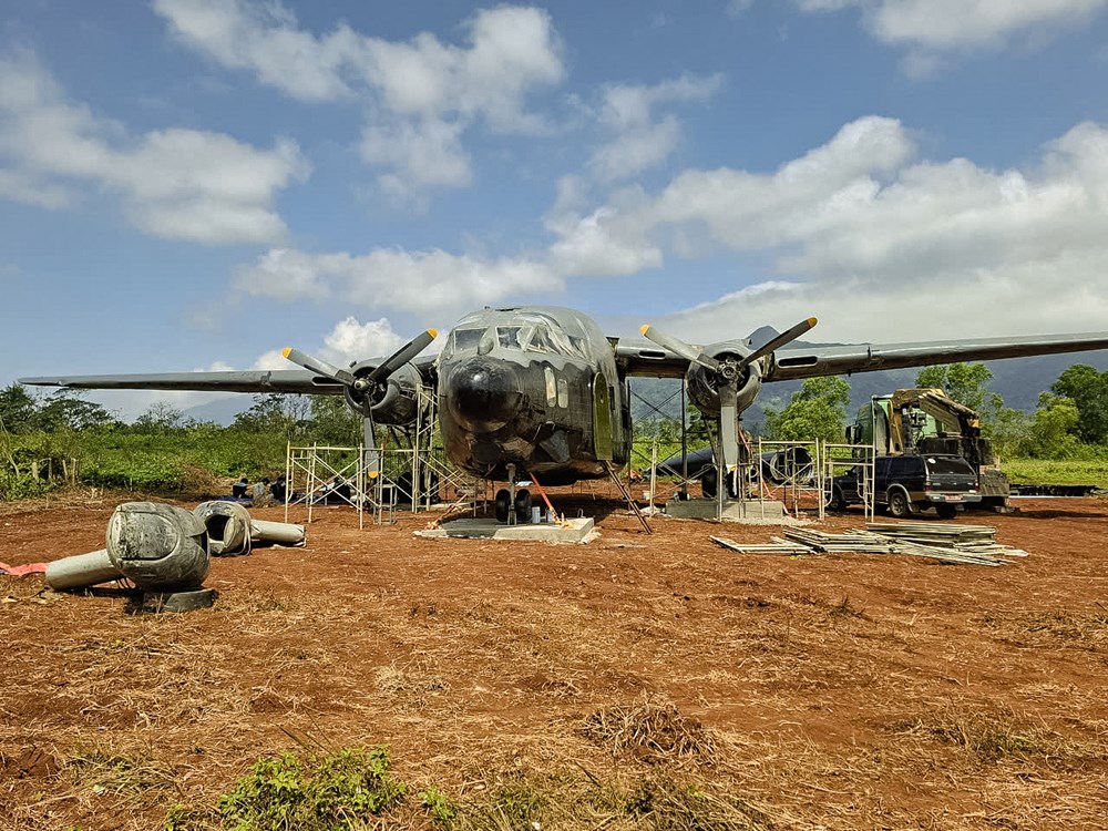 Máy bay C-119 đang được tiến hành lắp đặt lại tại di tích sân bay Tà Cơn