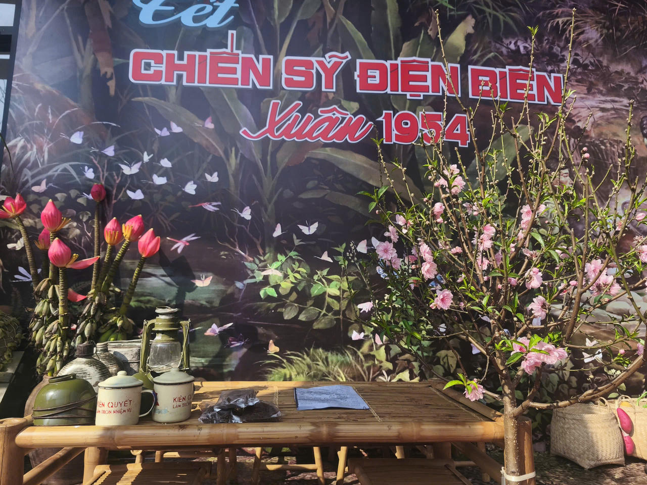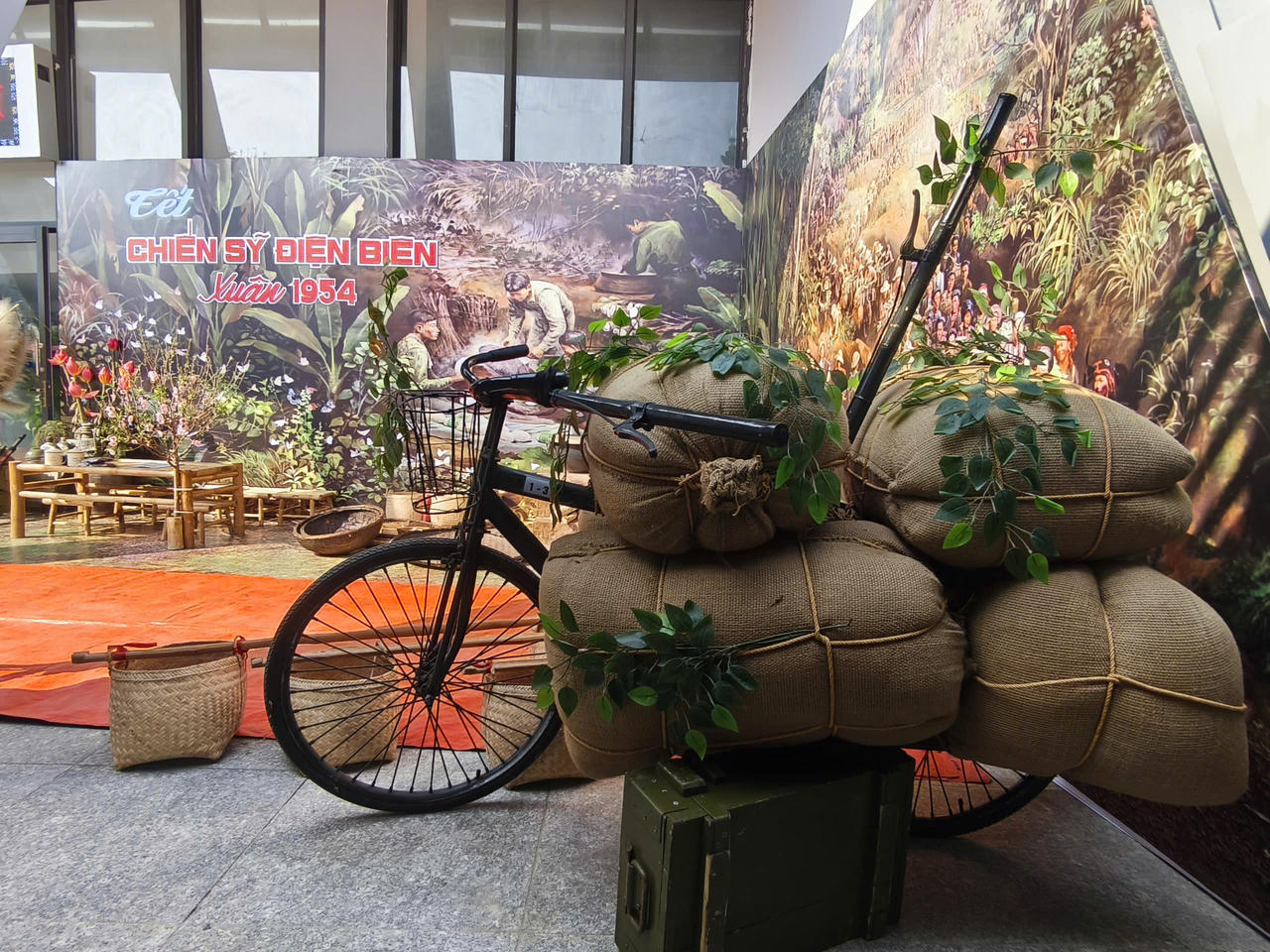 Chương trình tái hiện không gian đón Tết của bộ đội và Nhân dân phục vụ Chiến dịch Điện Biên Phủ năm 1954 theo phong cách dã chiến, mộc mạc. Nhiều hiện vật, mô hình, như: Xe đạp thồ, hòm đạn, bi đông, lán trại, cùng bánh chưng, hoa đào, lương thực hậu phương… được bố trí sinh động, giúp người tham quan cảm nhận không khí Tết giản dị nhưng lạc quan của các chiến sĩ năm xưa.