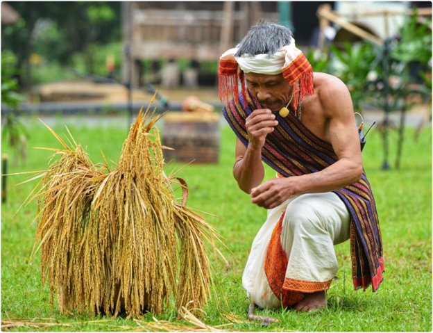 Lễ mừng lúa mới là một trong những nghi lễ truyền thống tiêu biểu của người Chu Ru, gắn bó mật thiết với đời sống sản xuất nông nghiệp. Từ bao đời nay, đồng bào Chu Ru tại thôn Diom A, xã D’Ran, tỉnh Lâm Đồng sống dựa vào canh tác lúa nước kết hợp làm nương rẫy. Trong quan niệm của họ, hạt lúa không đơn thuần là lương thực nuôi sống con người mà còn là kết tinh của đất trời, là món quà thiêng liêng do các đấng Yang ban tặng. Vì vậy, sau mỗi mùa thu hoạch, người dân đều tổ chức lễ mừng lúa mới để tạ ơn thần linh, đồng thời gửi gắm ước mong về một mùa vụ thuận lợi, cuộc sống đủ đầy.
