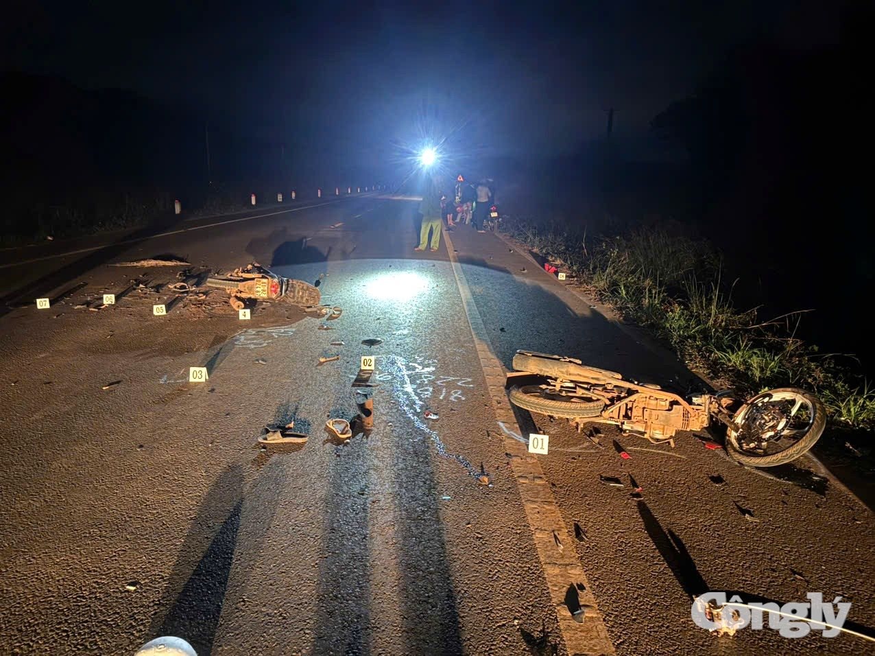 Hiện trường vụ tai nạn giữa 2 xe máy, khiến 2 người tử vong và 2 người bị thương.