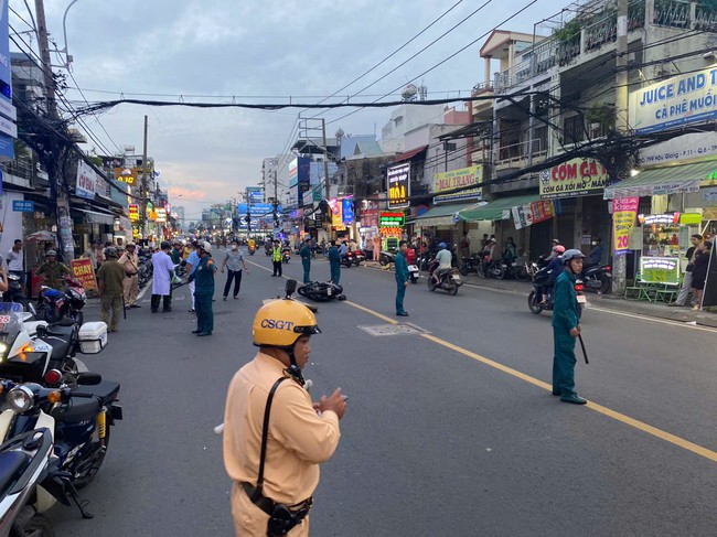 Công an phường Phú Lâm phối hợp lực lượng CSGT đến hiện trường phong tỏa, điều tiết giao thông, làm rõ nguyên nhân.