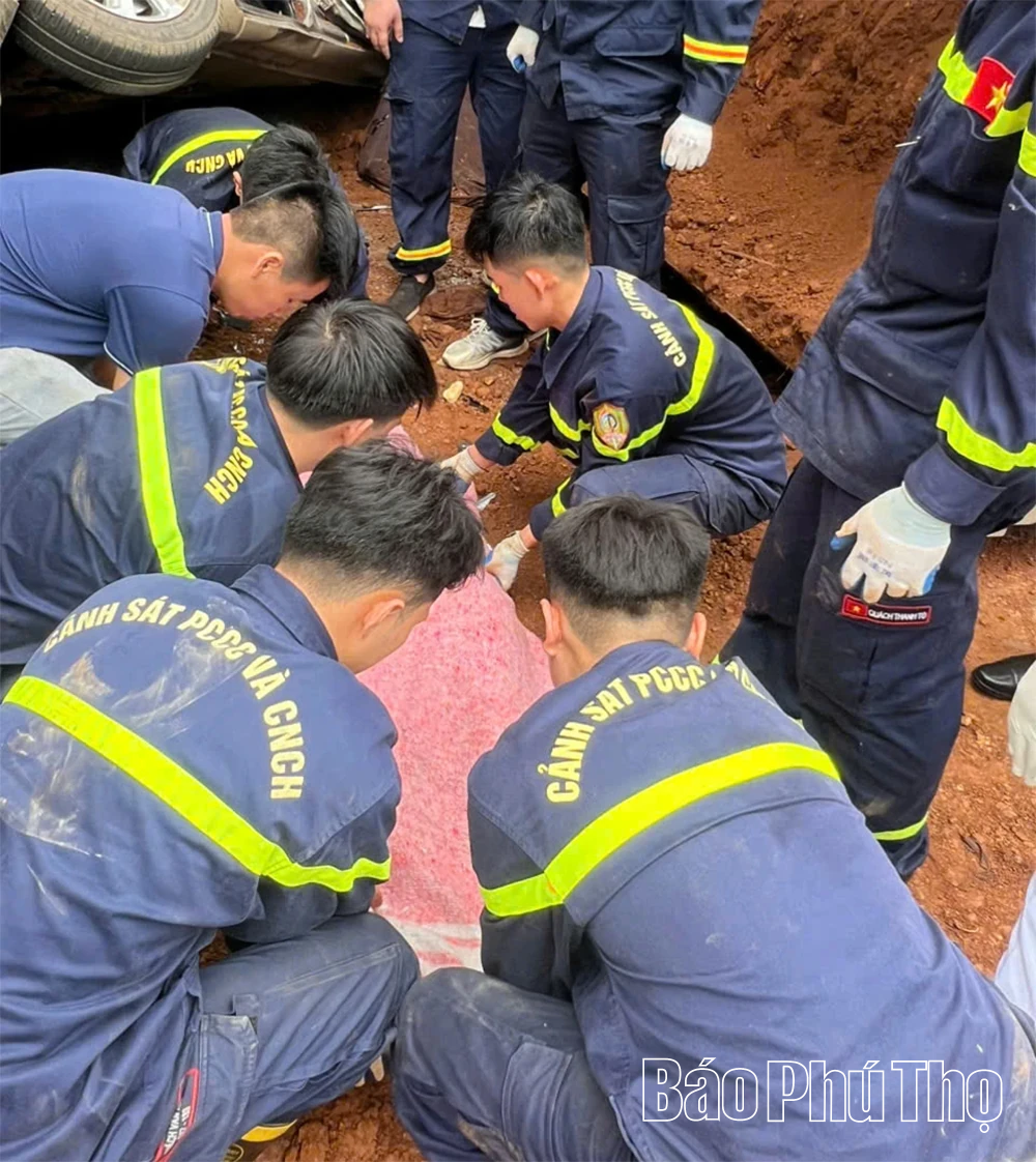 Ngay khi nhận được tin báo vụ việc lúc 7h35’, Đội Chữa cháy và cứu nạn, cứu hộ khu vực Lạc Sơn thuộc Phòng Cảnh sát Phòng cháy, chữa cháy và cứu nạn, cứu hộ, Công an tỉnh Phú Thọ đã điều động 1 xe cứu nạn và 10 cán bộ, chiến sĩ đến hiện trường triển khai các biện pháp đưa các nạn nhân ra ngoài.