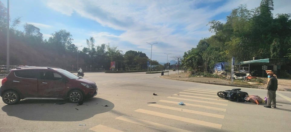 Tại hiện trường, xe mô tô mang biển kiểm soát (BKS) 11AN-017.95 do anh Triệu Chàn Chiêu (sinh năm 2004) trú tại xã Phan Thanh điều khiển di chuyển theo hướng từ cầu Sông Hiến đi đến địa phận tổ dân phố Đề Thám 2, phường Thục Phán xảy ra va chạm mạnh với xe ô tô con mang BKS 11A-234.50 (chưa rõ danh tính người điều khiển) di chuyển cùng chiều đang rẽ phải về hướng Thuế tỉnh.