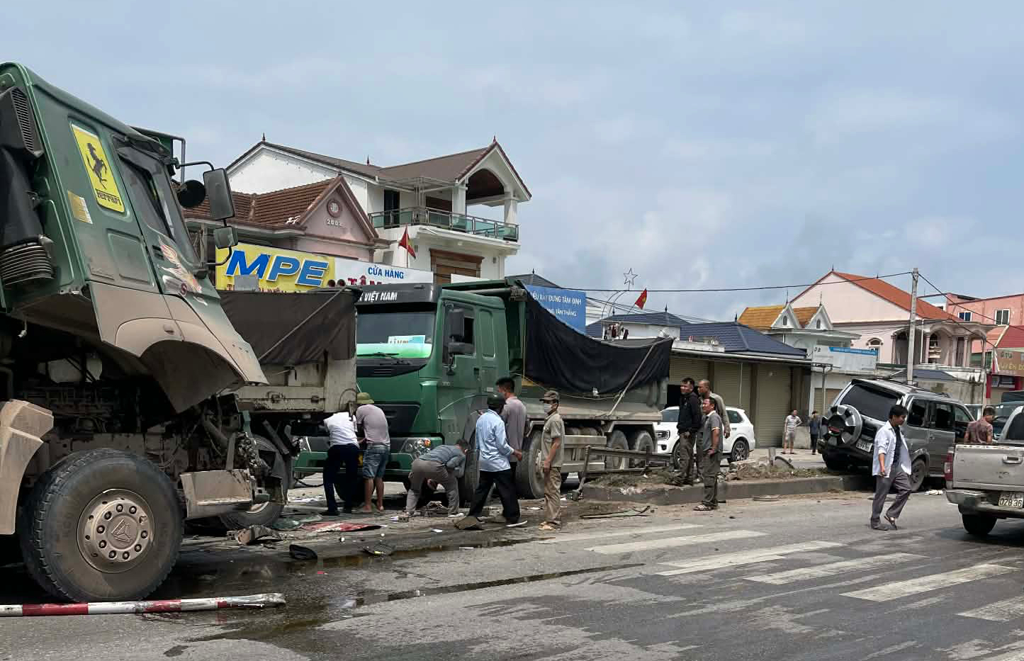 Tại hiện trường, 2 xe tải đâm trực diện nhau, trong đó xe tải BKS 37C-198.XX quay đầu theo hướng Bắc - Nam, còn xe tải BKS 29K-017.XX quay đầu theo hướng ngược lại.