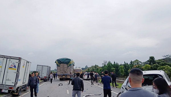 Thời điểm trên, xe tải BKS: 12H-001.18 đang lưu thông theo hướng Thái Nguyên - Hà Nội thì tông liên hoàn vào 5 ô tô khác gồm BKS: 20H-019.XX, 99A-947.XX, 20A-749.XX, 20B-019.XX và 20A-595.XX đi cùng chiều phía trước.