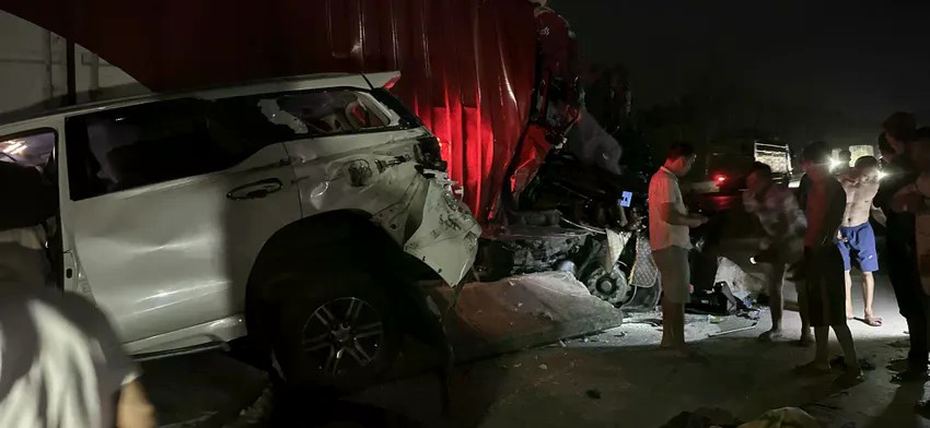 Khi đến Km 7 trên tuyến La Sơn - Túy Loan (thuộc xã Hưng Lộc, TP Huế), xe tải tông mạnh vào đuôi xe ô tô đầu kéo 77H-04516 kéo theo rơ-moóc 88R-01396 do tài xế N.N.N (38 tuổi, ở tỉnh Vĩnh Phúc) điều khiển đang chạy cùng chiều phía trước.