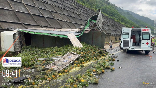 Cú va chạm mạnh khiến phương tiện này bị hư hỏng nặng. Chưa dừng lại, xe tải 64C-077.xx tiếp tục lao về phía ô tô tải BKS 37H-65xxx chở dứa đang dừng bên lề đường, khiến xe bị lật nghiêng, hàng hóa tràn xuống mặt đường, gây ách tắc cục bộ.