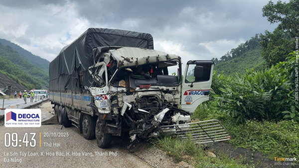 Theo thông tin ban đầu từ CSGT Công an TP Đà Nẵng, khoảng 9h30' cùng ngày, xe tải BKS 64C-077.xx lưu thông hướng Bắc – Nam, khi đến Km42+200, bất ngờ đâm trực diện vào đuôi xe tải BKS 79H-009.xx cùng chiều.
