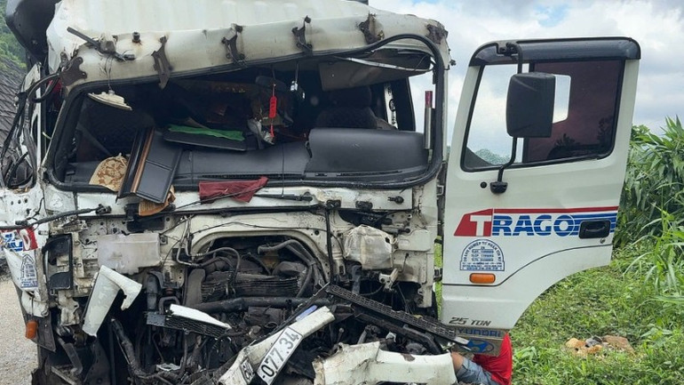 Cú va chạm mạnh khiến 2 tài xế xe tải 64C-07… và 37H-65… bị thương, được lực lượng chức năng và Đội quản lý vận hành hầm đường bộ Mũi Trâu nhanh chóng đưa đi cấp cứu.