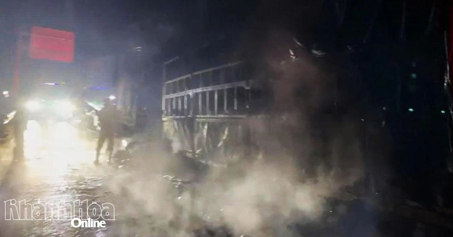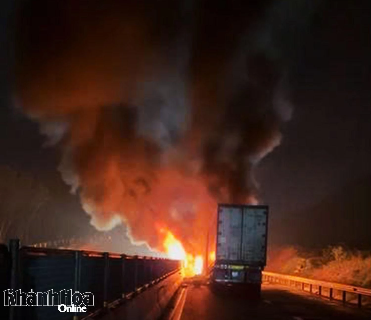 Hiện trường vụ cháy khiến cao tốc đoạn qua đây bị ùn ứ nghiêm trọng. Lực lượng Cảnh sát phòng cháy chữa cháy và cứu nạn, cứu hộ Công an tỉnh Khánh Hòa đã điều động 2 xe chữa cháy cùng hàng chục cán bộ, chiến sĩ đến dập lửa và xử lý hậu quả.