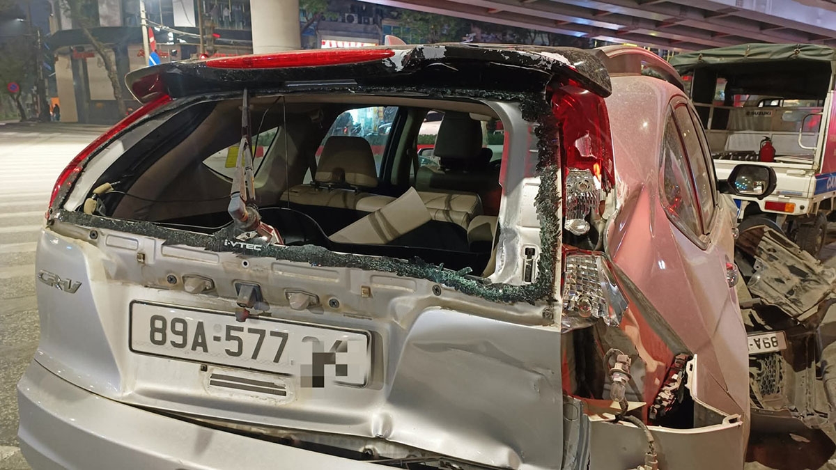Anh P. T. V. (19 tuổi, quê Phú Thọ), người điều khiển xe máy biển số 28F1-226.XX cho biết, xe máy của anh bị ô tô 7 chỗ đâm trúng khi đang đứng bên đường. "Lúc này, tôi thấy một ô tô tải đâm vào phía sau ô tô con mang BKS 89A-577.XX đang lưu thông theo chiều từ Láng – Ngã Tư Sở. Sau va chạm mạnh, ô tô con lao qua dải phân cách giữa đường rồi đâm vào xe máy của tôi”.