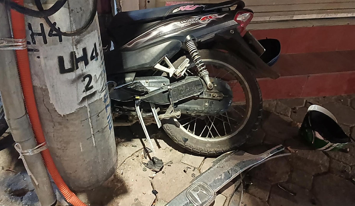 Xe máy hỏng nặng sau cú va chạm mạnh.