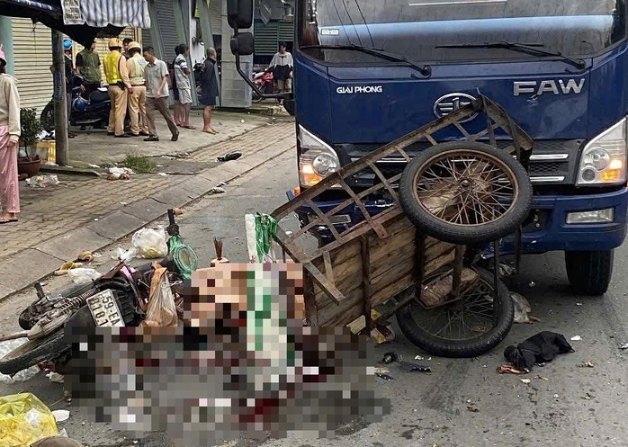 Lúc này, chiếc xe tải chạy lên va chạm với xe lôi khiến anh T. tử vong tại chỗ.