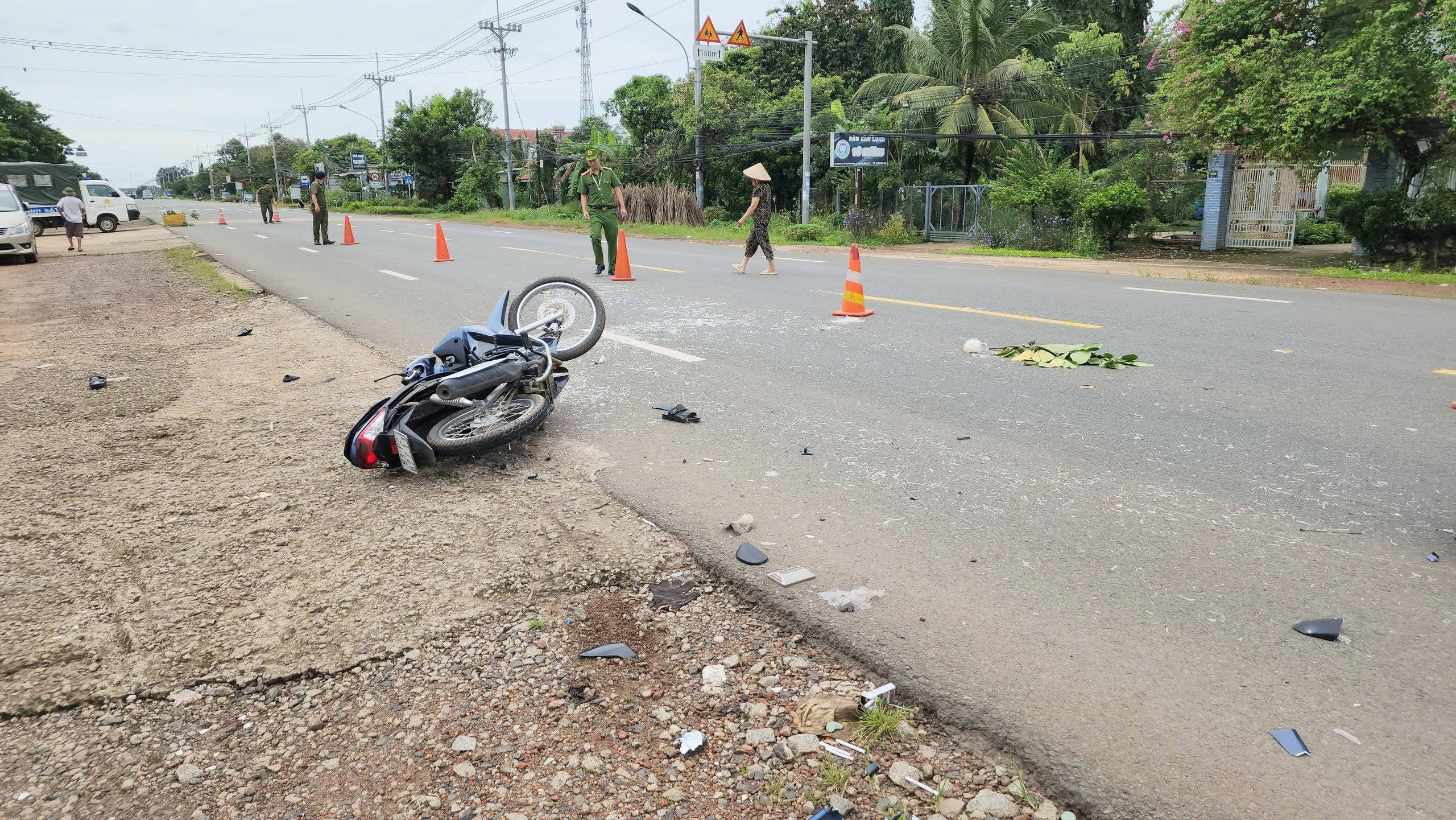 Cú va chạm mạnh khiến cả 2 nạn nhân ngã văng xuống đường, bị thương nặng và tử vong ngay sau đó. Hai phương tiện hư hỏng biến dạng.
