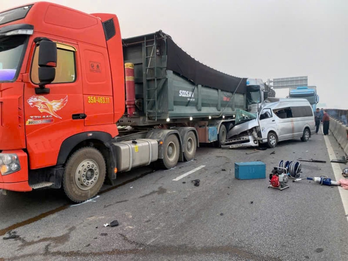 Trước đó, khoảng 3h40 ngày 14/1, tại km 334+300 tuyến cao tốc Mai Sơn - Quốc lộ 45, thuộc địa phận thôn Nhạ Lọc, xã Đồng Tiến, tỉnh Thanh Hóa, xe ô tô khách biển kiểm soát 38C-229.33 do anh Phan Văn Trường (SN 1986, trú tại thôn Trại Tiểu, xã Đồng Lộc, tỉnh Hà Tĩnh) điều khiển, lưu thông theo hướng Nghệ An - Hà Nội, trên xe chở theo 11 người, đã va chạm với xe ô tô tải ben biển kiểm soát 35A-463.11 kéo theo rơ móc biển kiểm soát 35RM-005.20 do anh Bùi Văn Hồi (SN 1990, trú tại thôn Vệ Chùa, xã Phú Sơn, tỉnh Ninh Bình) điều khiển, đang dừng đỗ phía trước.