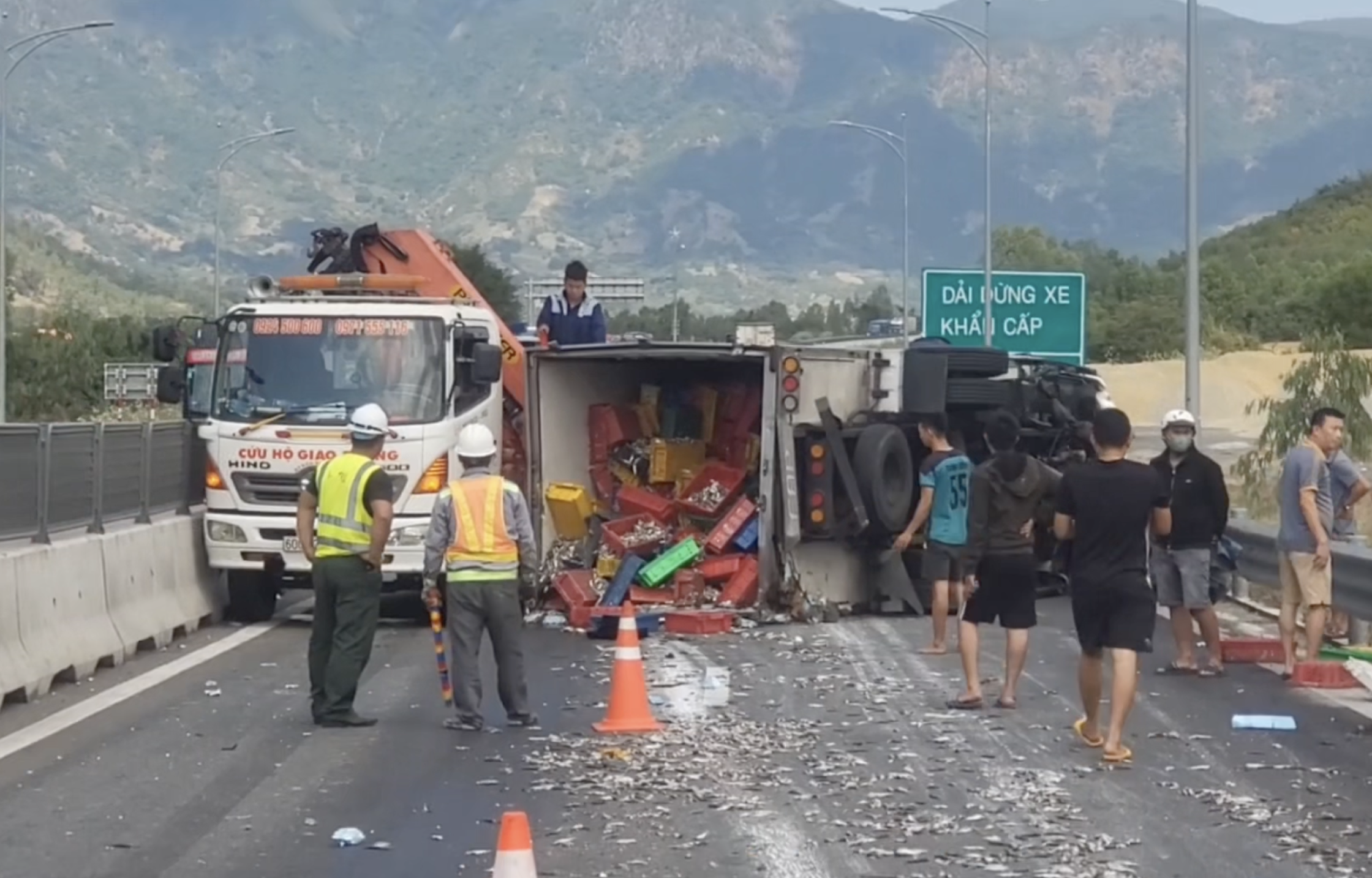 Thông tin ban đầu, khoảng 10 giờ 30 ngày 7-2, trên tuyến cao tốc Cam Lâm - Vĩnh Hảo tại km56 (địa phận xã Nam Cam Ranh, tỉnh Khánh Hòa), theo hướng Nam – Bắc có 2 phương tiện va chạm. Trong đó, một xe tải chở cá bị lật nằm chắn ngang đường; xe còn lại hư hỏng.