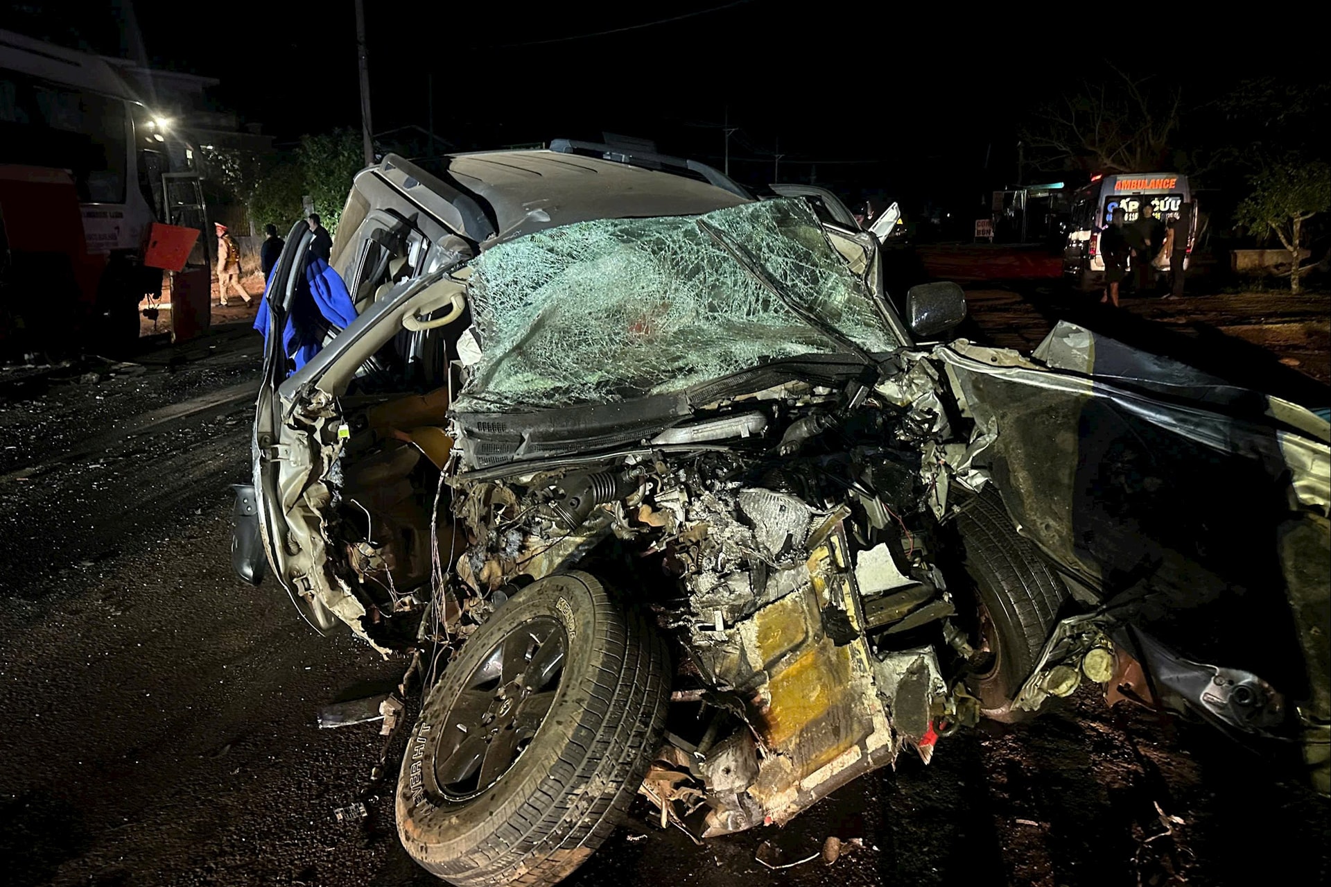 Cú va chạm mạnh khiến anh X. và anh T. tử vong tại chỗ. Anh Q. bị thương được người dân đưa đi cấp cứu. 2 phương tiện bị hư hỏng nặng.