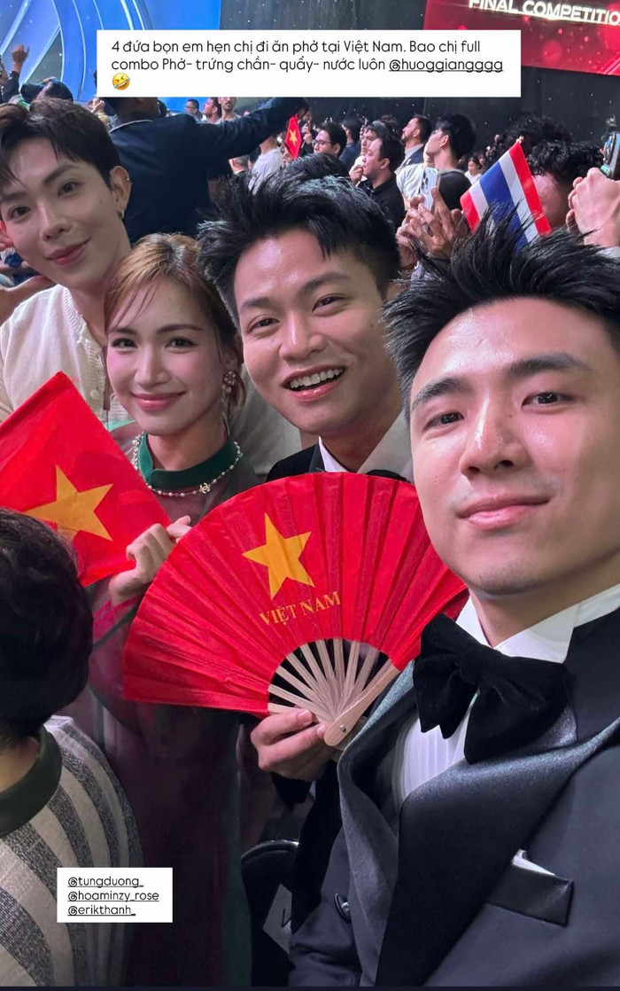 Không chỉ dừng lại ở lời nói, sự ủng hộ dành cho Hương Giang còn được thể hiện bằng hành động. Đáng chú ý, trong những ngày thi cuối, nhiều nghệ sĩ, KOL và TikToker đã không ngần ngại bay sang Thái Lan để trực tiếp cổ vũ cô.