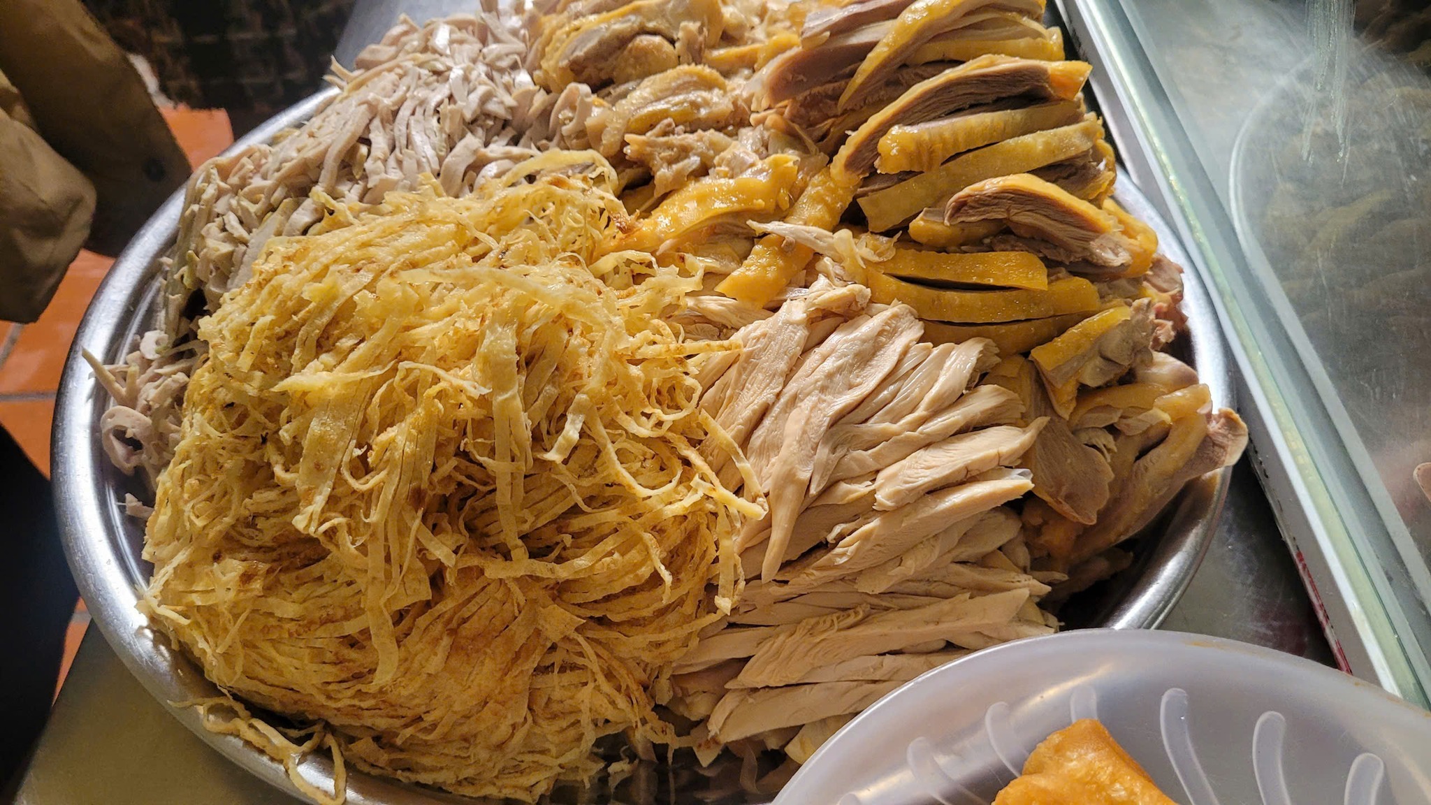 Bún phải là loại bún rối trắng tinh, sợi nhỏ, còn phảng phất hương lá chuối dùng để gói. Thịt gà nhất định phải là gà ta, thịt mềm và được xé thật nhỏ, xen lẫn cả da lẫn thịt để tạo sắc vàng ngà đặc trưng.