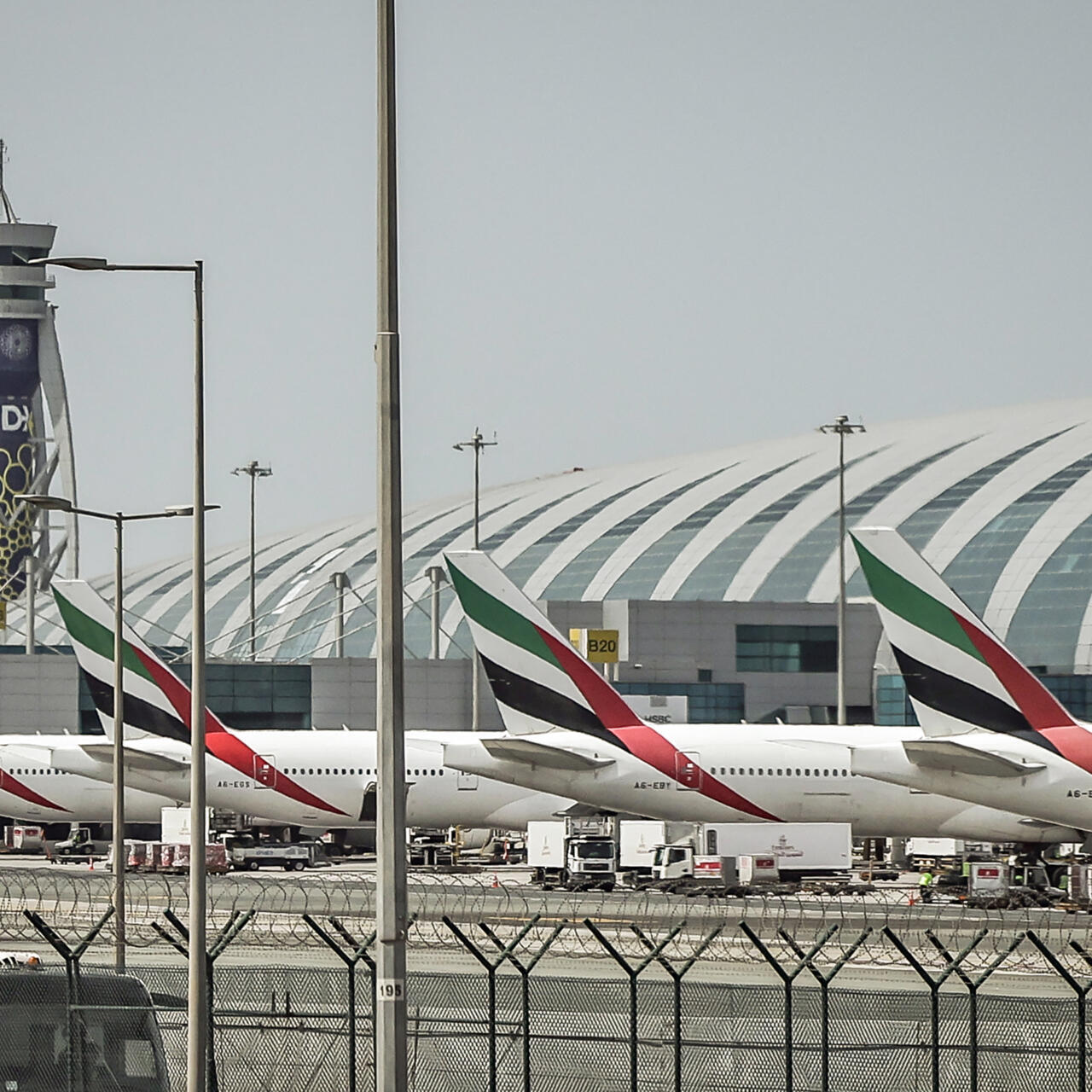 Máy bay chở khách đậu trên đường băng tại Sân bay Quốc tế Dubai ở Dubai (UAE) vào ngày 11-3. Ảnh: AFP