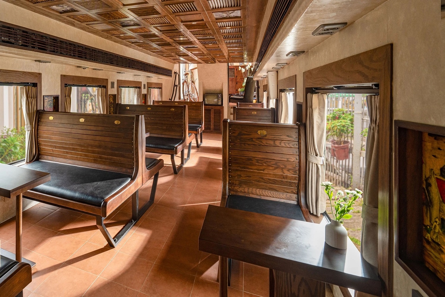 Bên trong tàu du lịch 2 tầng ở Hà Nội với nội thất được thiết kế sang trọng để du khách tận hưởng và chụp ảnh. Ảnh: The Hanoi Train.