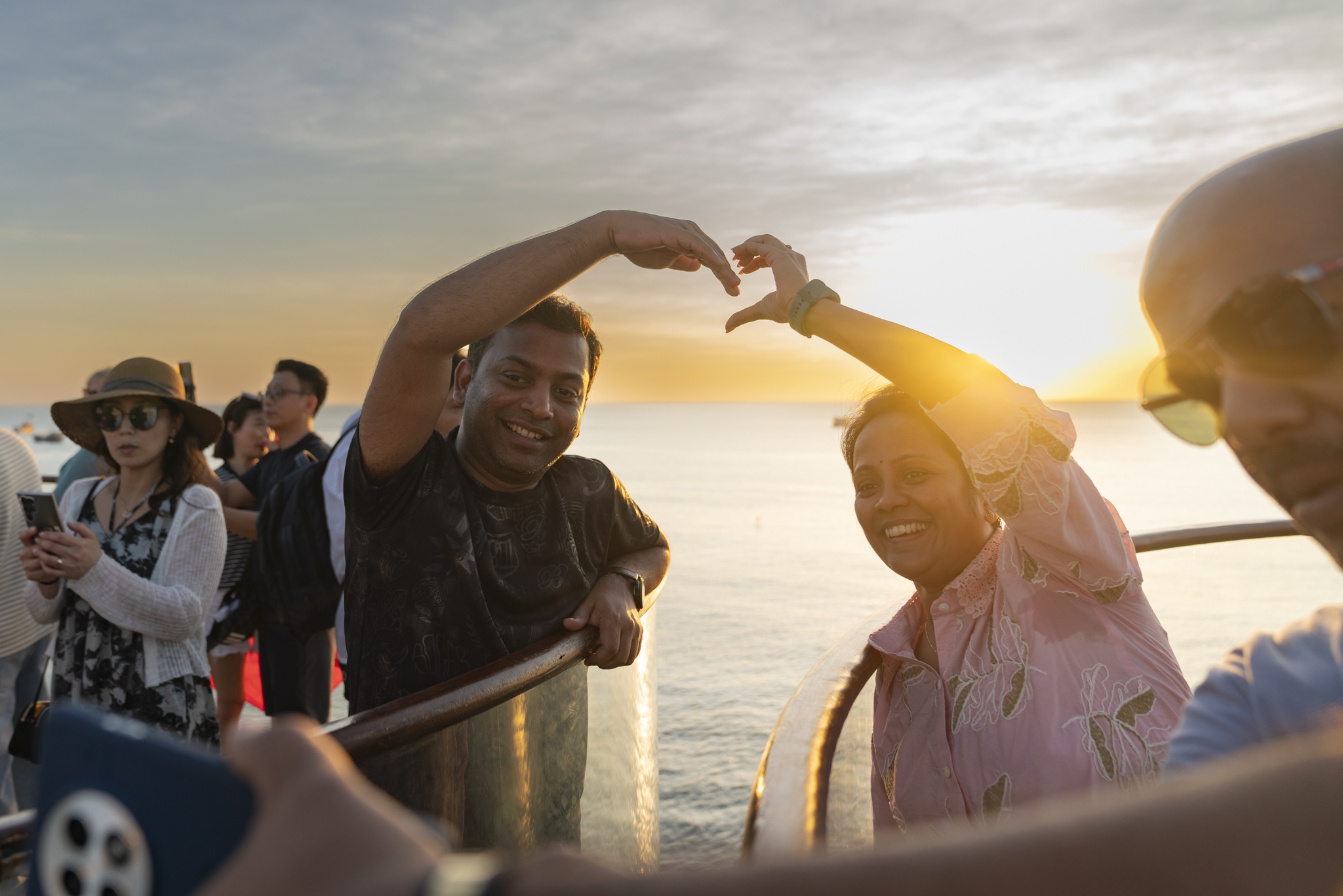 Du khách Ấn Độ đón hoàng hôn tại cầu Hôn (Kiss bridge), Phú Quốc vào tháng 12. Ảnh: Linh Huỳnh.