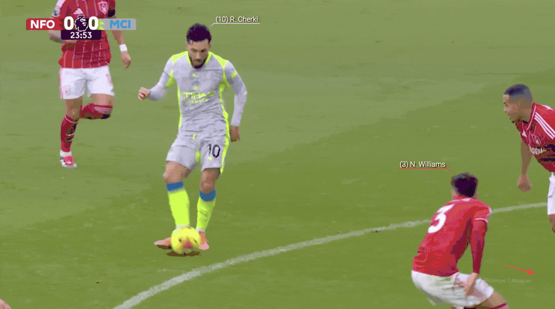 Trong phần lớn thời gian trận đấu, đội bóng của Guardiola gặp khó khăn trong việc tìm khoảng trống giữa các tuyến trong sơ đồ 4-5-1 chặt chẽ của Forest, khi Morgan Gibbs-White lùi xuống tuyến giữa và đảm bảo các hậu vệ của City không thể chuyền bóng xuyên qua hàng phòng ngự. Nhưng chính những trận đấu như thế này, sự sáng tạo của Cherki mới được phát huy và anh đã có pha kiến tạo thứ bảy của mùa giải ngay đầu hiệp hai.