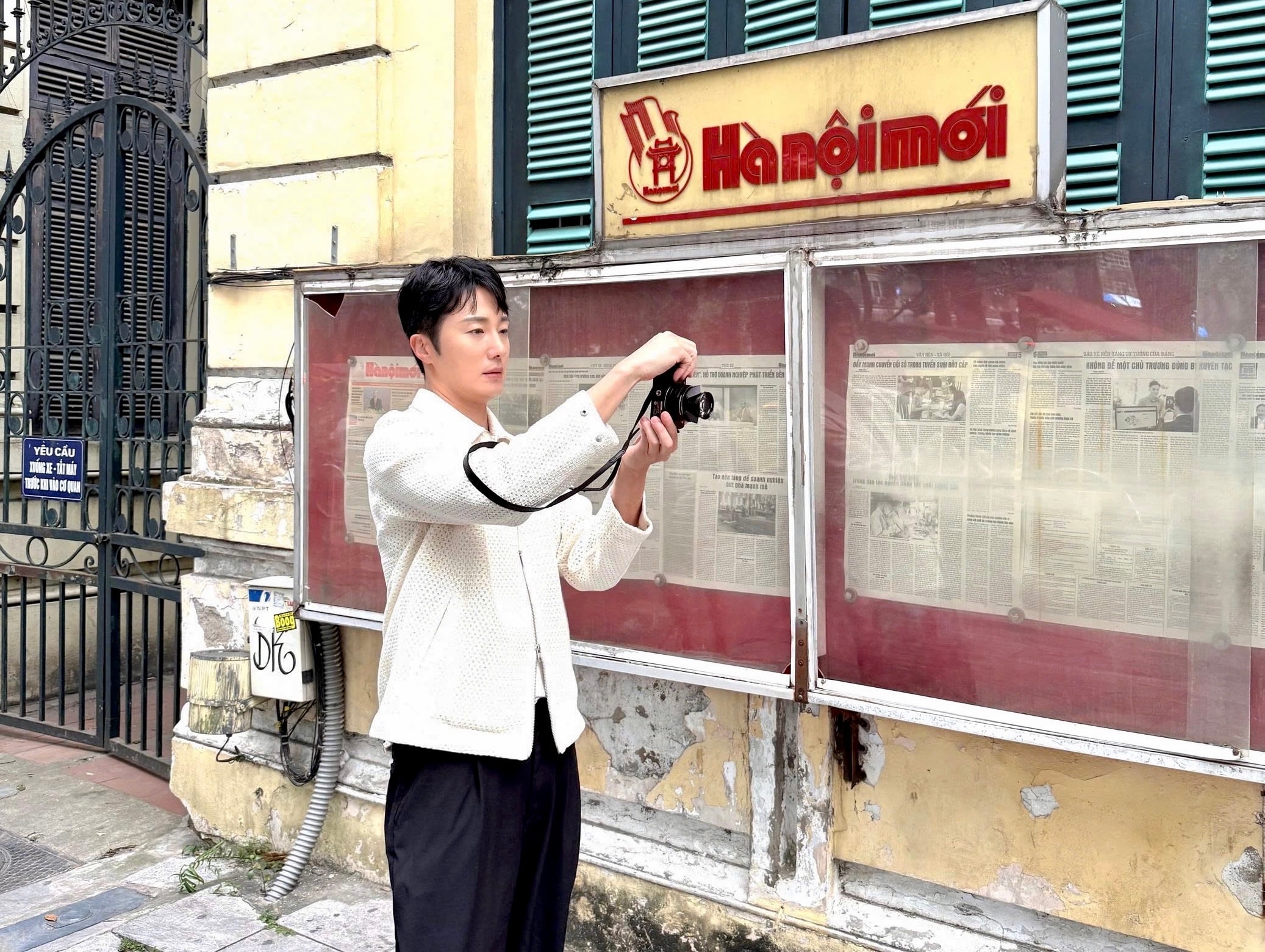 Tài tử Hàn Quốc Jung Il Woo đến Việt Nam và check-in tại địa điểm nổi tiếng trên phố Lê Thái Tổ (Hoàn Kiếm, Hà Nội). Ảnh: NVCC