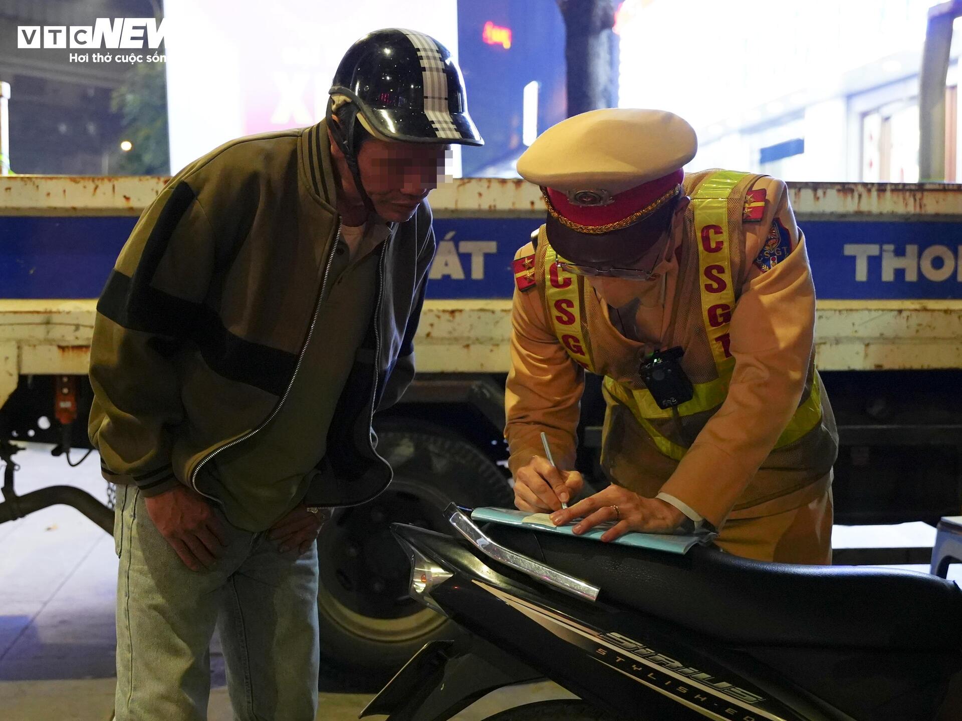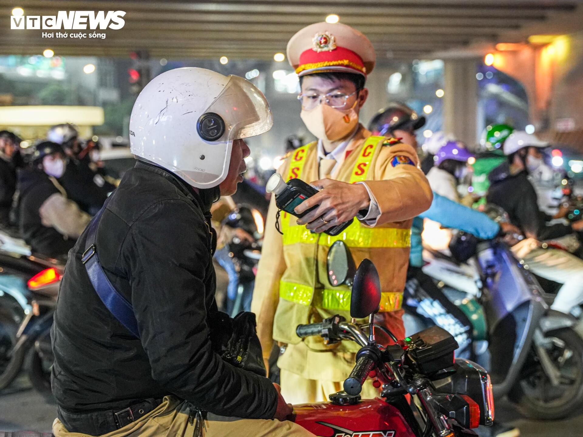 Khoảng 21h cùng ngày, phát hiện một tài xế chạy xe loạng choạng, có biểu hiện không tỉnh táo, tổ công tác ra hiệu lệnh dừng xe và yêu cầu đo nồng độ cồn.