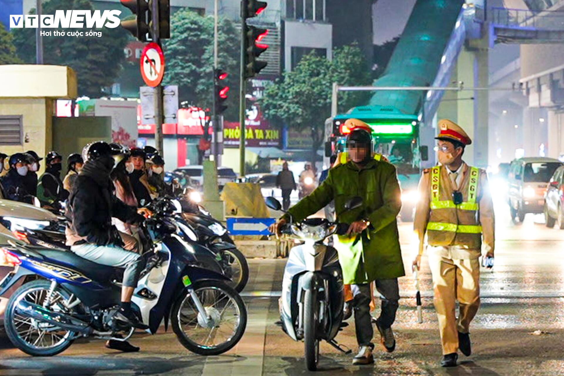 Tối 3/2, tại nút giao Khuất Duy Tiến - Nguyễn Trãi, một trong những điểm có mật độ phương tiện lớn của Thủ đô, dòng xe lưu thông đông đúc trong khung giờ cao điểm. Đội CSGT số 7 (Công an TP Hà Nội) tổ chức chốt kiểm tra nồng độ cồn, tập trung vào thời điểm đèn tín hiệu chuyển đỏ để bảo đảm an toàn, không gây xáo trộn giao thông.