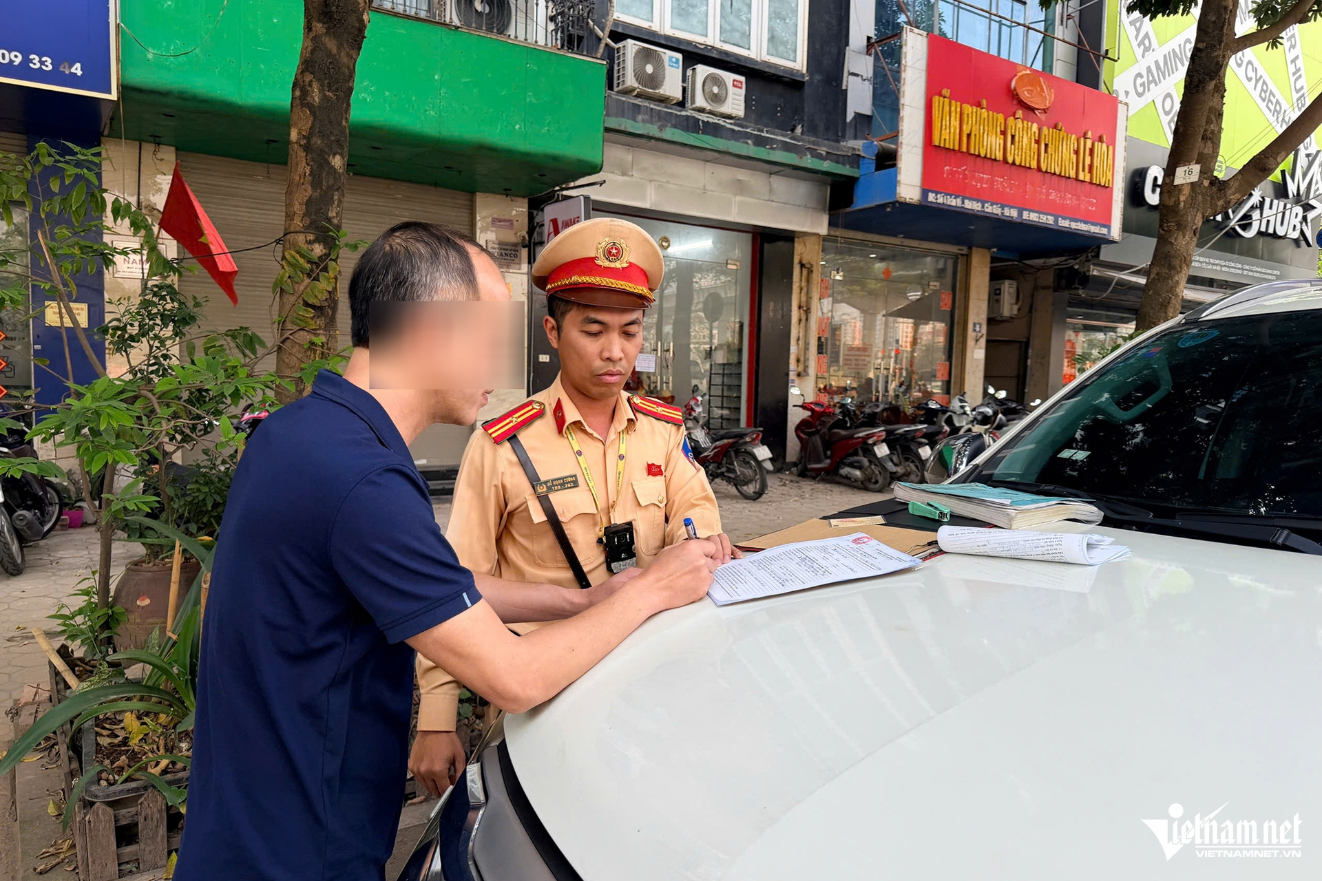 Tương tự, nam tài xế N.X.H. (SN 1983, trú tại Hà Nội) cho rằng chỉ đỗ ô tô một lát để chuyển đồ vào cửa hàng nên sẽ không bị xử phạt.