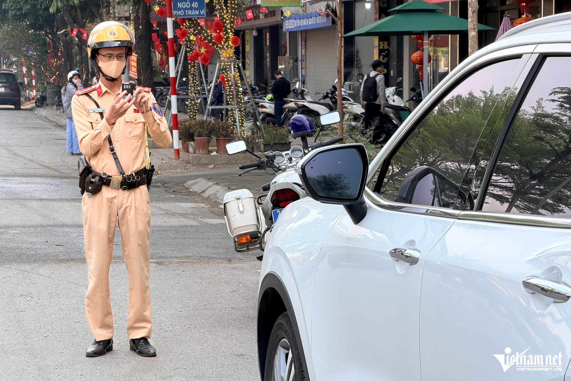 Trình bày với CSGT, ông N.X.V. cho rằng chỉ đỗ xe trong chốc lát nên không ảnh hưởng đến giao thông, mong lực lượng chức năng thông cảm.