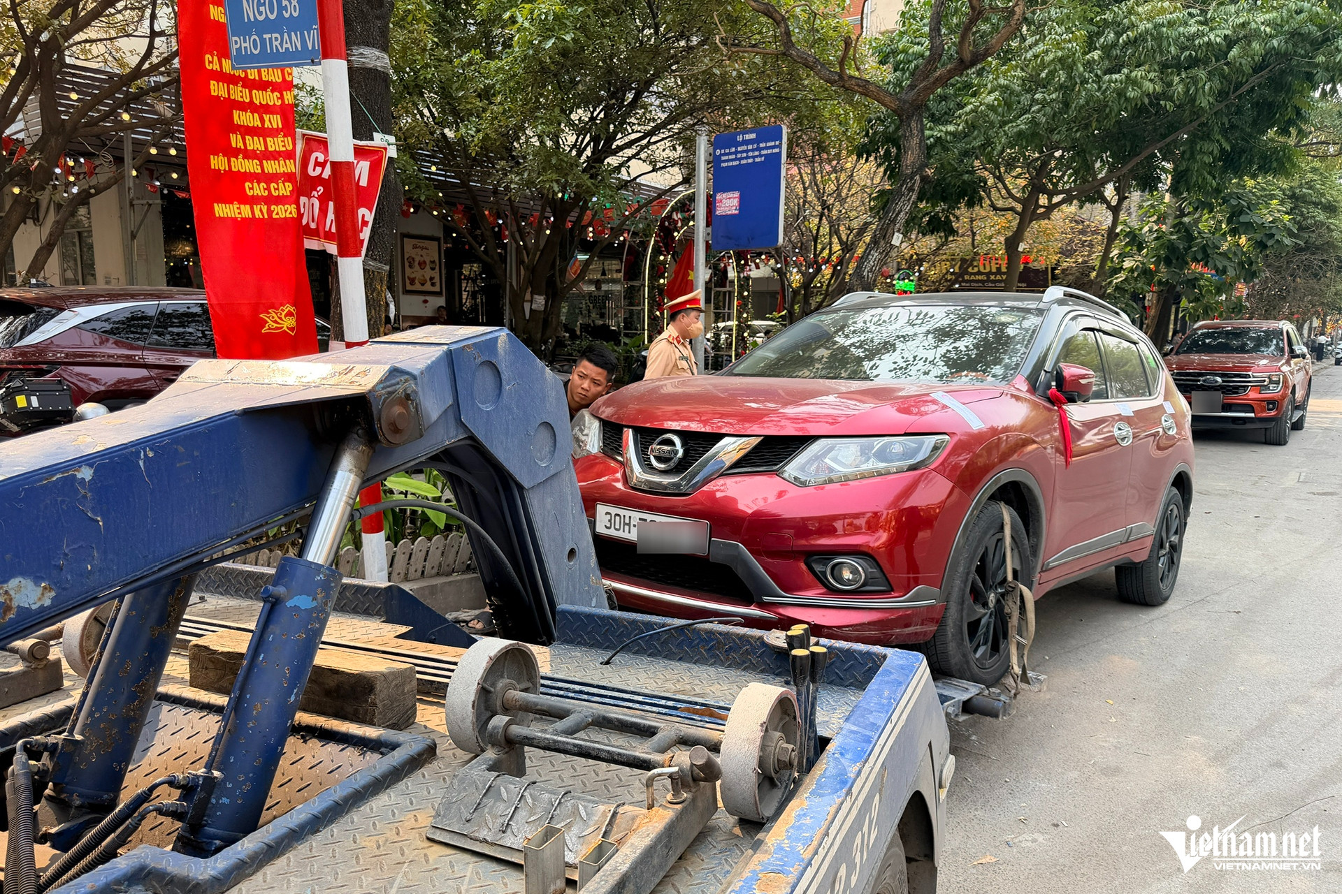 Lực lượng CSGT đã gọi loa thông báo, gọi điện cho chủ phương tiện nhưng bất thành nên buộc phải niêm phong, cẩu kéo xe về bãi tạm giữ.
