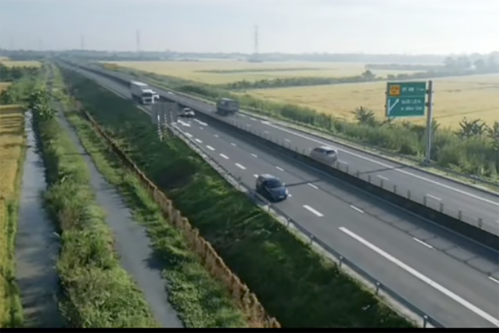 Tài xế T.A dừng ô tô trên cao tốc để bay flycam, ghi hình. Ảnh chụp màn hình
