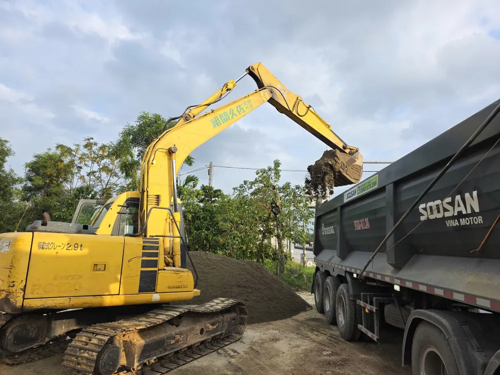 Quá trình di chuyển về trạm cân, tài xế xe đầu kéo là Hoàng Quốc T (xã Vĩnh Thủy) đã bất ngờ dừng xe bên đường, rồi lùi vào khu đất trống để đổ hết cát xuống đất nhằm trốn tránh việc cân tải trọng.
