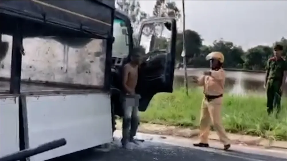 Khi bị chặn lại, tài xế cầm dao cố thủ trong cabin, có hành vi chống trả, dù lực lượng Công an xã Long Thuận và Bến Cầu thuyết phục nhiều lần.