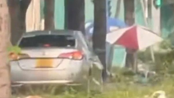 Hình ảnh xe ô tô con biển số vàng leo lề chạy bon bon giữa phố