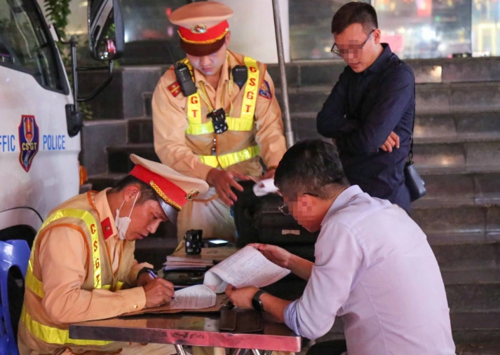 Vào khoảng 21h, tổ công tác dừng kiểm tra xe Mercedes biển số 30E-117.xx do anh N.T.G. (42 tuổi, quê Hưng Yên) điều khiển, chở theo bạn gái. Kết quả đo cho thấy tài xế này có nồng độ cồn 0,477 mg/lít khí thở, mức vi phạm “kịch khung” theo Nghị định 100/2019/NĐ-CP.