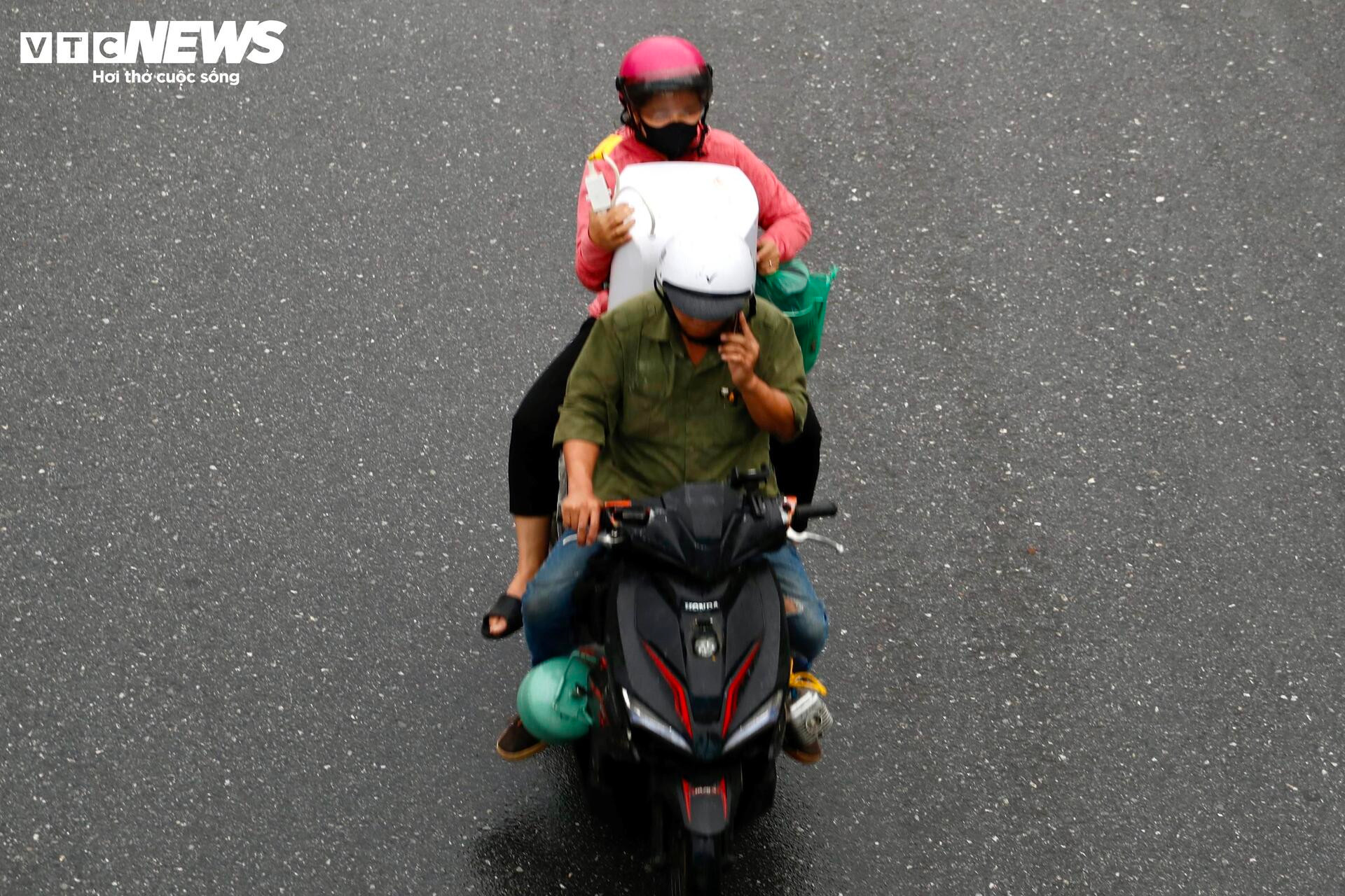 Tài xế xe máy không đội mũ bảo hiểm, vi phạm các quy tắc an toàn cơ bản.